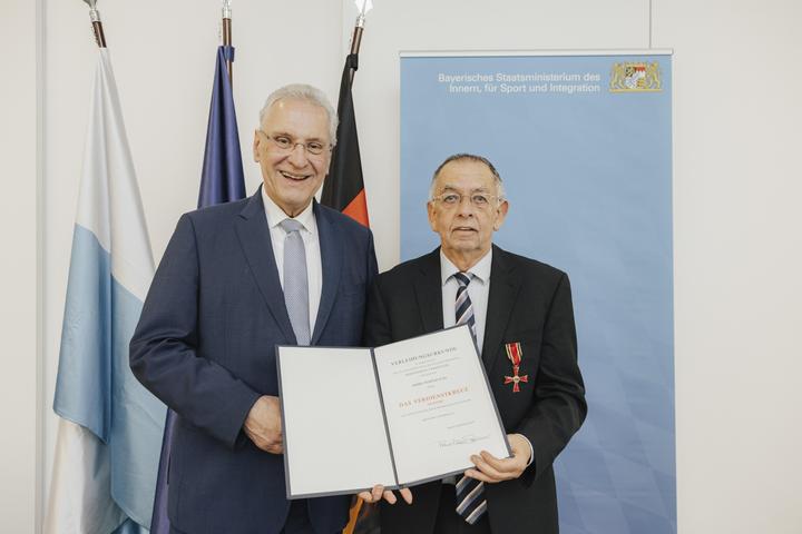 Mit diesen Worten begann der bayerische Innenminister Joachim Herrmann seine Würdigung, bevor er im Auftrag des Bundespräsidenten Werner Jung das Bundesverdienstkreuz am Bande ans Revers heftete. Dabei ging er insbesondere auf die ehrenamtliche Arbeit für den Bund christlicher Posaunenchöre Deutschlands ein.