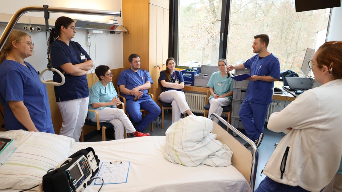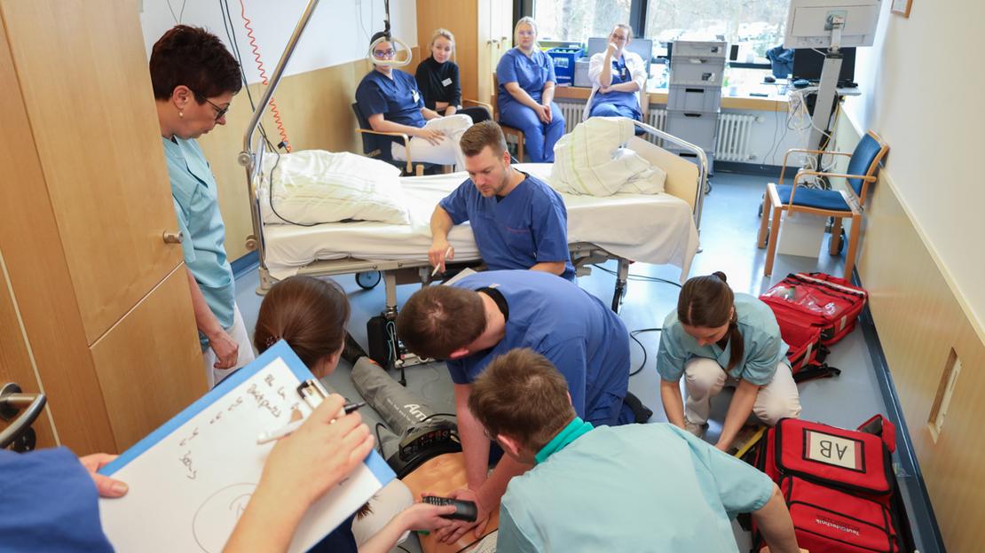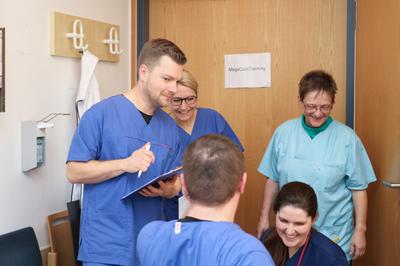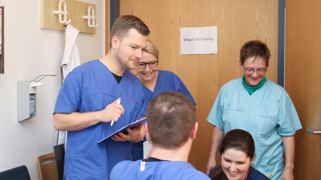 Zweimal im Monat bieten Kollegen unserer Intensivstation das MegaCode-Training an. Für Kollegen der Bereiche mit Monitorüberwachung ist dieses erweiterte Reanimationstraining Pflicht, aber auch alle übrigen Mitarbeitenden sind zur Schulung herzlich willkommen.