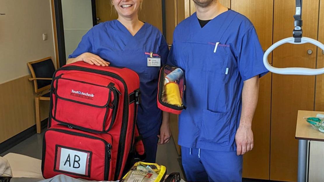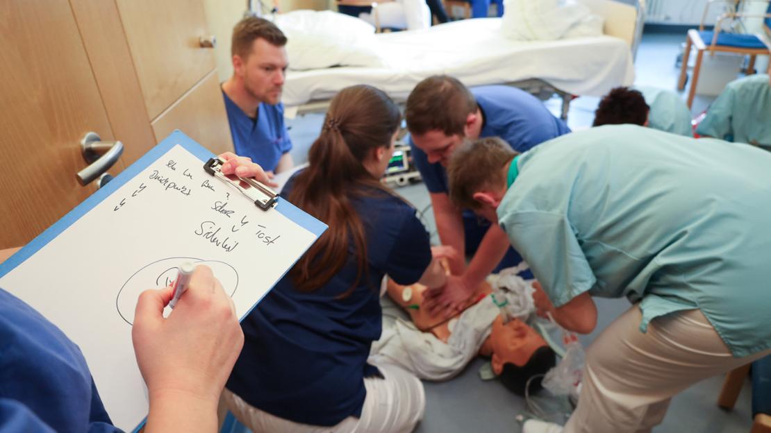 Vincent Dieke und Susanne Langenhan gestalten das MegaCode-Training möglichst realitätsnah. Die Voraussetzung zur Teilnahme ist theoretisches Wissen, das anhand eines Skriptes im Vorfeld zu lernen ist.