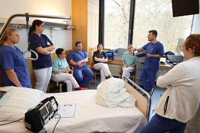 Das MegaCode-Training ist für alle Mitarbeitenden der Funktionsbereiche und Abteilungen mit Monitorüberwachung jährlich verpflichtend. Die Instruktoren freuen sich aber über alle Kollegen, die sich für die Schulung anmelden – berufsübergreifend, erklärt Dieke: