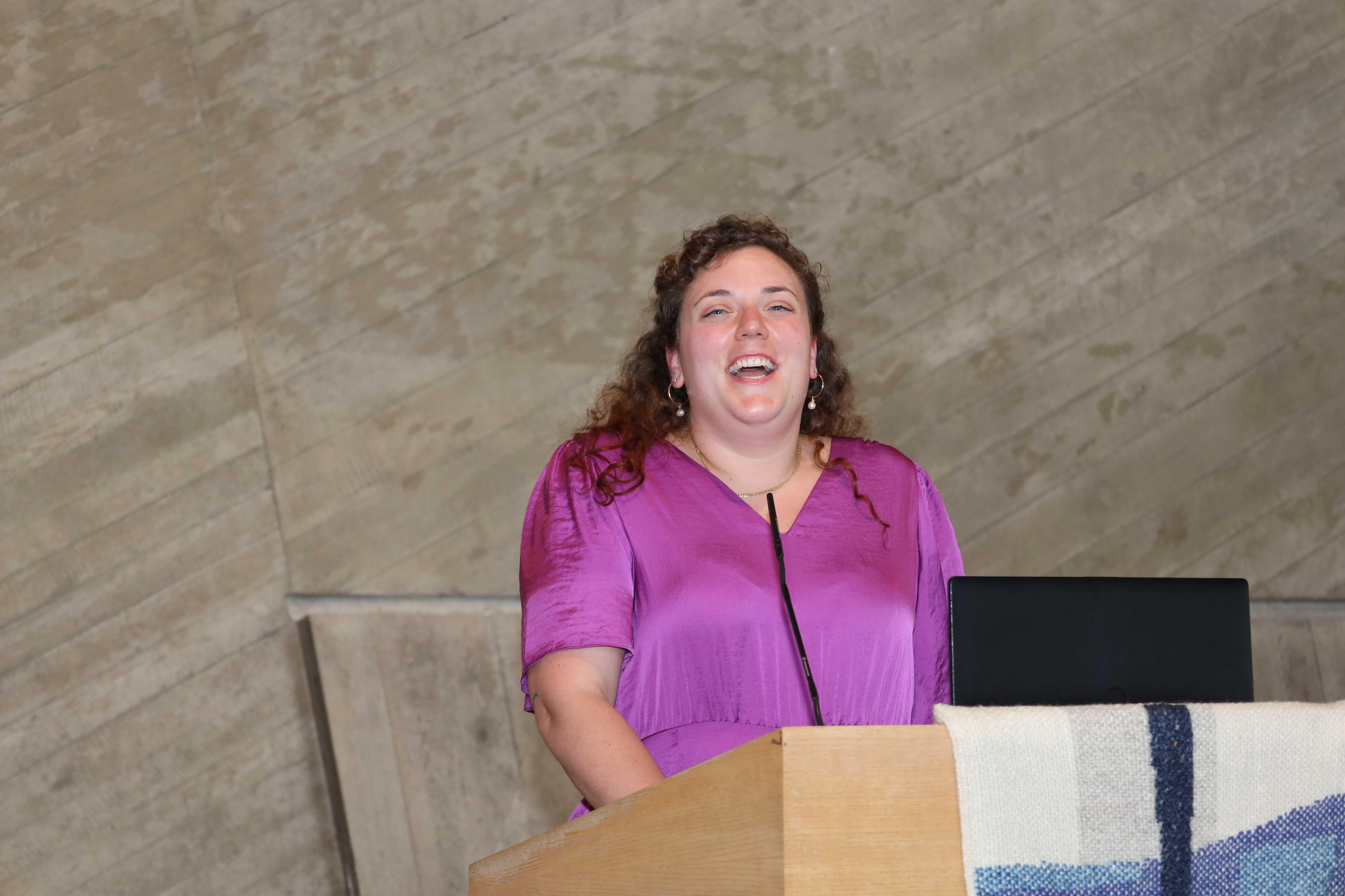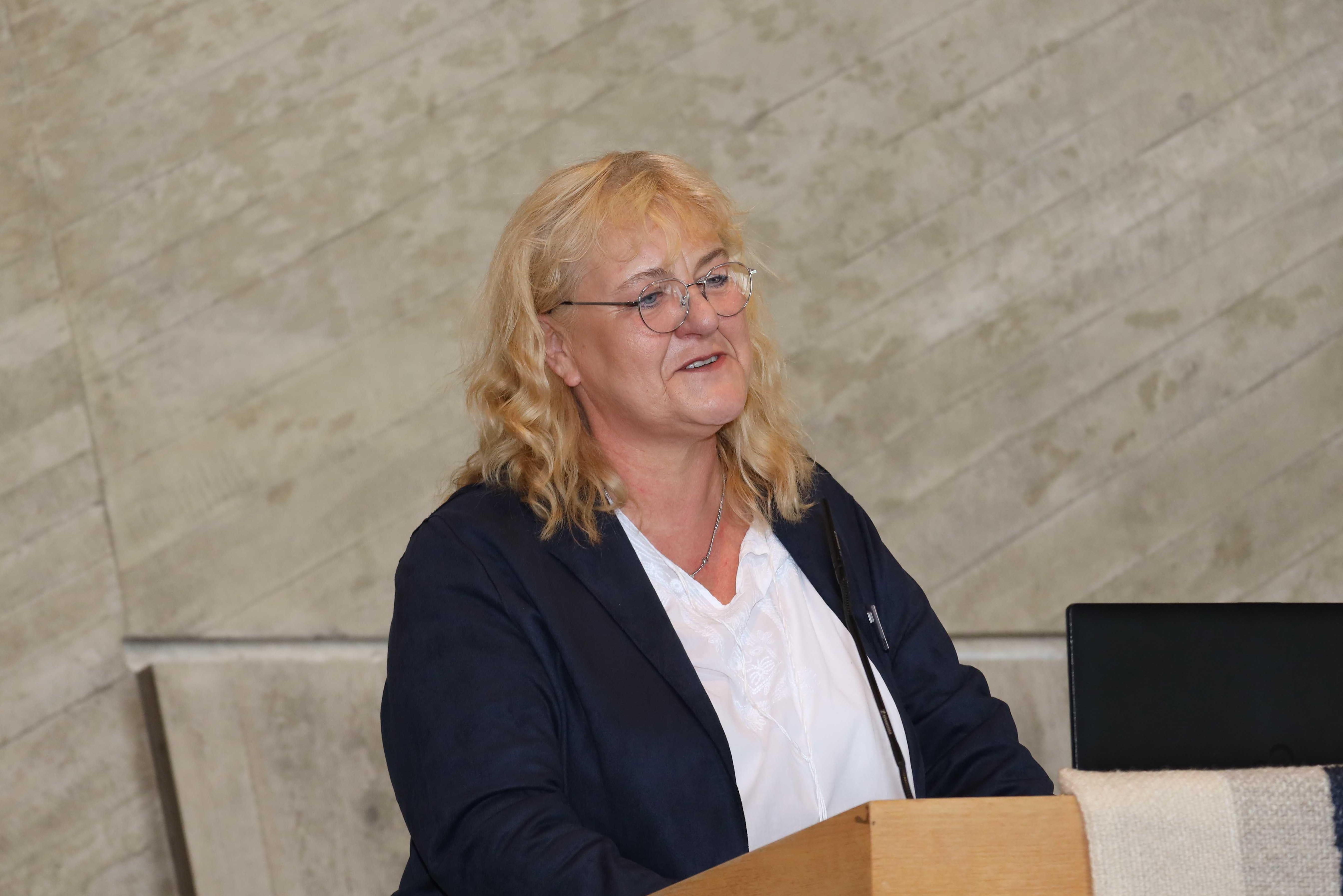 Klassenleiterin Bjoerg Küchler reflektierte über ihre Zeit mit der Klasse, die sie zunächst als stellvertretende Klassenleiterin betreute. „Eine solche Klasse von Individualisten habe ich selten kennengelernt“, sagte sie. Sie habe viel von den jungen Menschen gelernt.