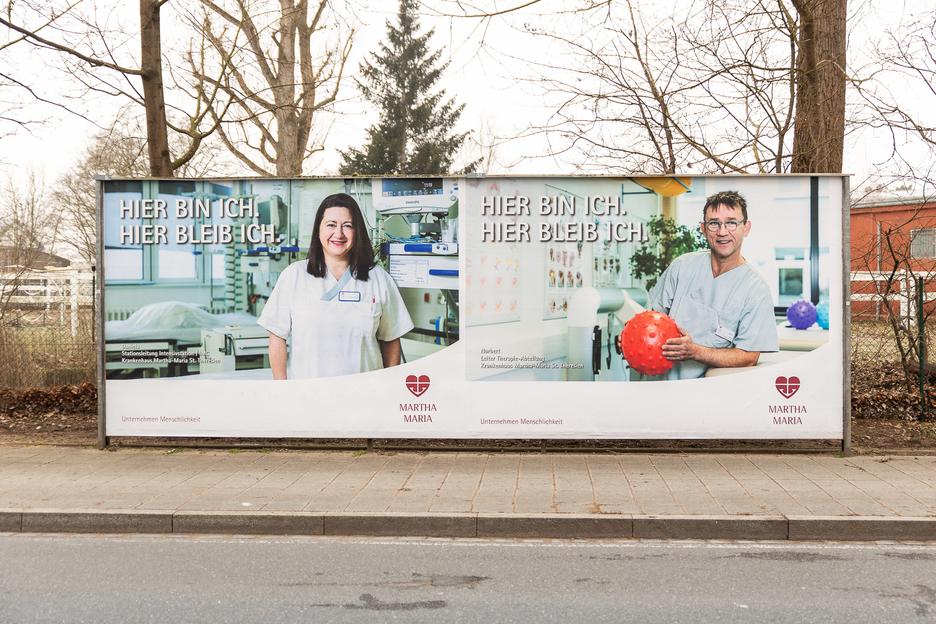 Neben der feierlichen Namensenthüllung am Standort Martha-Maria geht auch unsere große Plakat-Kampagne "HIER BIN ICH. HIER BLEIBE ICH." in die nächste Runde. Dieses Mal stehen unsere beiden Nürnberger Krankenhäuser im Mittelpunkt.